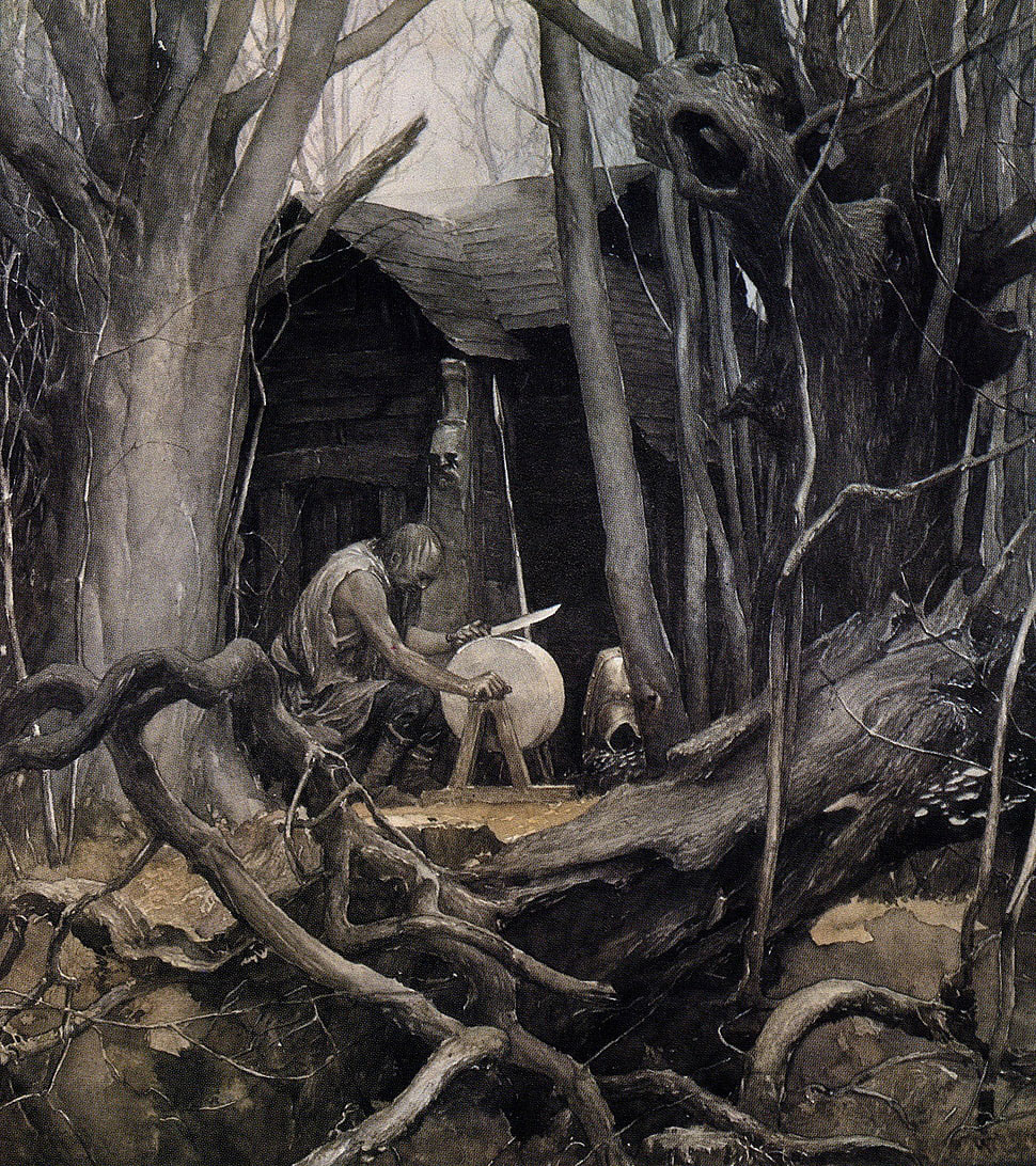 Tolkin je bio majstor u svom pisanju, slikajući mistične pejzaže svojim rečima zbog kojih je njegov imaginarni svet Srednje zemlje oživeo u umu čitaoca. Pošto je Li briljirao u crtanju Mrke šume, kamenih spomenika u jami i fantastičnih stvorenja, njegov stil je stoga bio prirodan za Tolkinov svet – kao što se možete videti u slikama u galeriji. Alan Li je proveo skoro tri poslednje decenije istražujući pejzaže Tolkinove mašte.