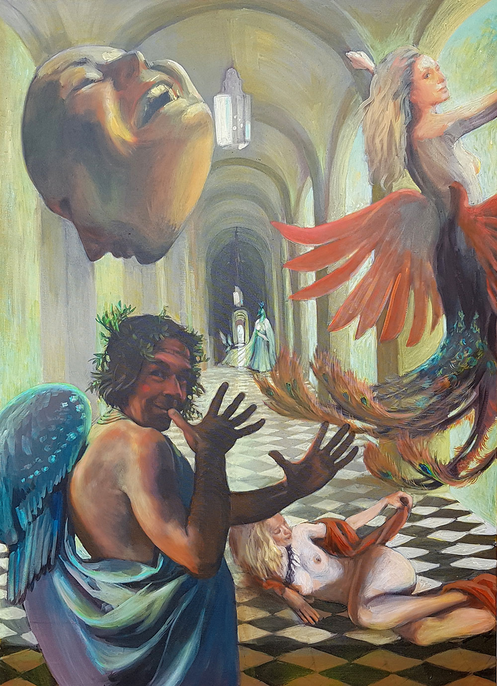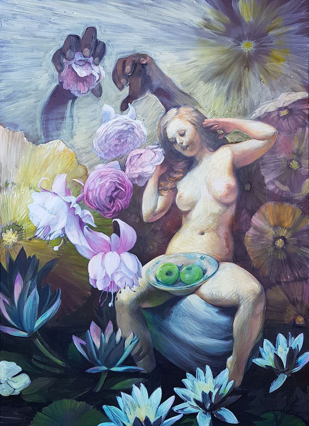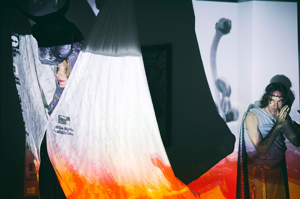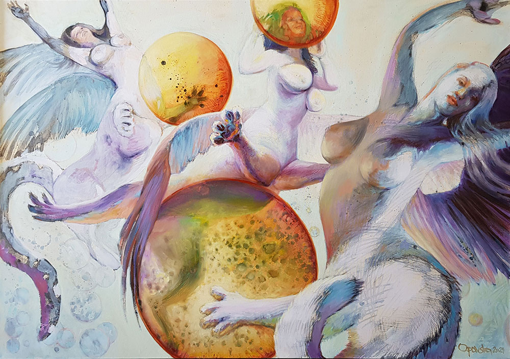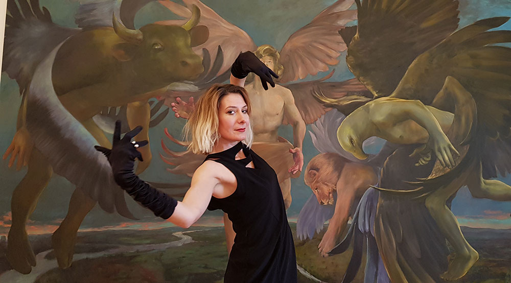 Umetnica Jasna Opavski (1974) svoj rad nije ograničila samo na četkice i boje – osim slikanjem, ona se bavi i pisanjem te performansom kojim pokušava da povrati sećanja na mitološka bića koja je inspirišu. Prikazi nagih tela kroz njenu interpretaciju pozivaju posmatračan dijalog i razmenjivanje ličnih fantazija.