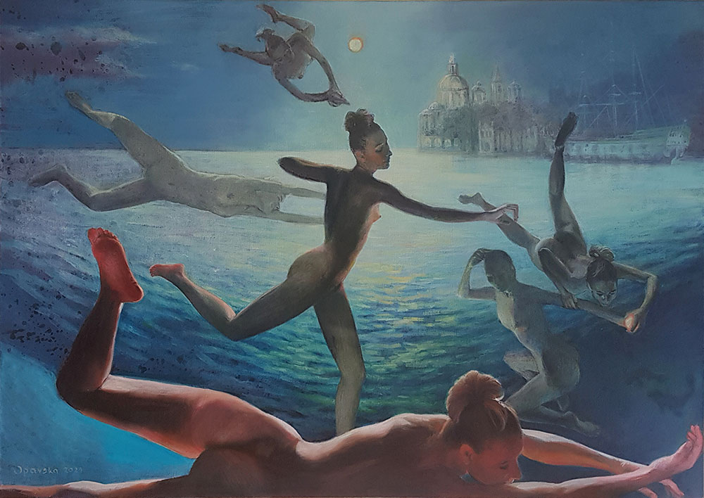 – Uživam u pokretu. Možda sam morala da napustim nade da ću ikada ponovo moći da napravim špagu ili salto, ali na platnu mogu da se bavim čak i letenjem. Volim dijagonale i spirale, više od mirnih horizontala i vertikala. Tu mogu da budem koreograf koji svojim plesačima zadaje nemoguće, a njima to sve ipak uspeva. Uvek su me uzbuđivale barokne kompozicije sa većim brojem figura pune pokreta. Za mene je pokret simbol slobode. Zar se pokretom ne naziva i svako udruživanje ljudi koji se bore za slobodu?