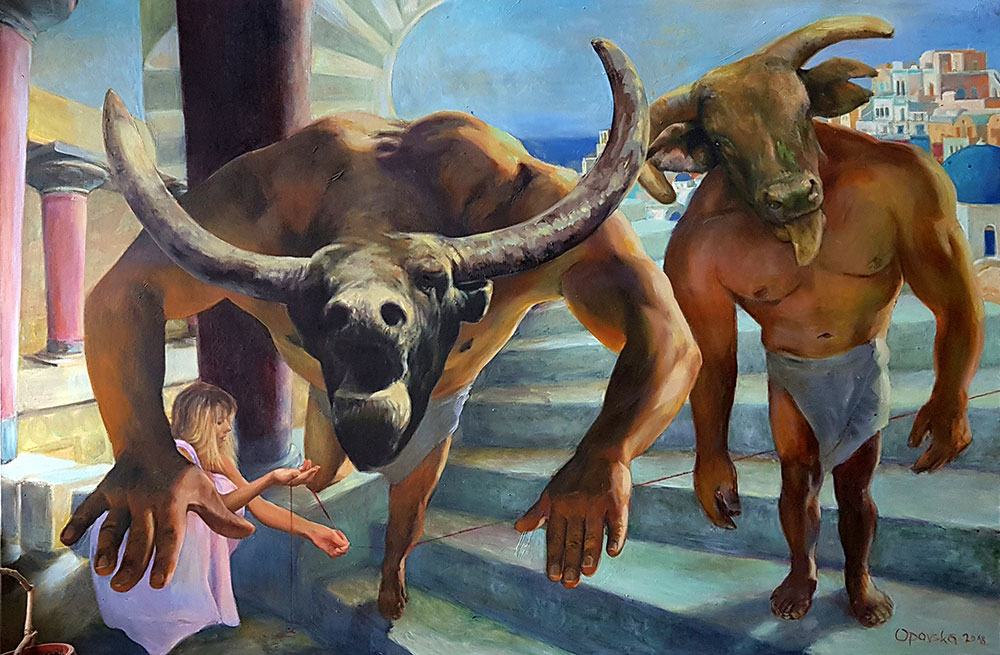 – Minotaur je arhetipski antiheroj, koji u meni izaziva simpatije kao nepravedno satanizovani lik, ali i kao predstavnik celokupne mitologije, neopravdano etiketirane kao zastarele. Ukratko, čovek sa glavom bika, rođen je takav da bi se kaznili njegovi roditelji. Iako nedužan, smatran je sramotom te je zatvoren u Lavirint iz koga nije mogao da izađe. Tu su mu ubacivani politički zatvorenici, kao jelovnik koji nije sam izabrao. Na kraju ga je ubio Tezej uz pomoć Arijadne, koja je inače bila Minotaurova polusestra.
