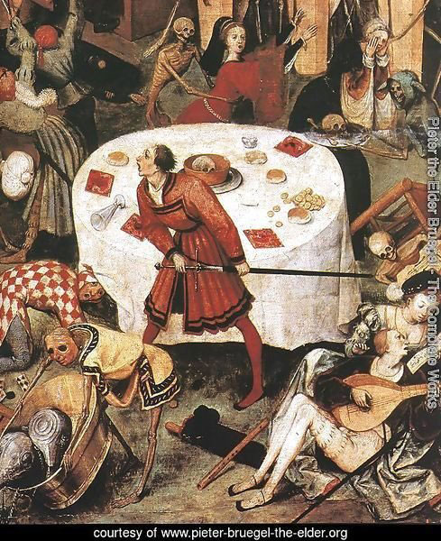 Nastala u doba kada je kuga desetkovala renesansnu Evropu, Trijumf smrti (1562) je slika prepuna detalja od kojih može da vam se zavrti u glavi. Evidentan je uticaj njegovog savremenika Hjeronimusa Boša i njegovog čuvenog Vrta uživanja. Inventivnošću u bizarnosti prikazanih detalja Brojgel je bujnu bošovsku fantaziju preobrazio u simboličku stvarnost čovekove egzistencijalne tragike. Ovu sliku možete videti u muzeju Prado u Madridu.